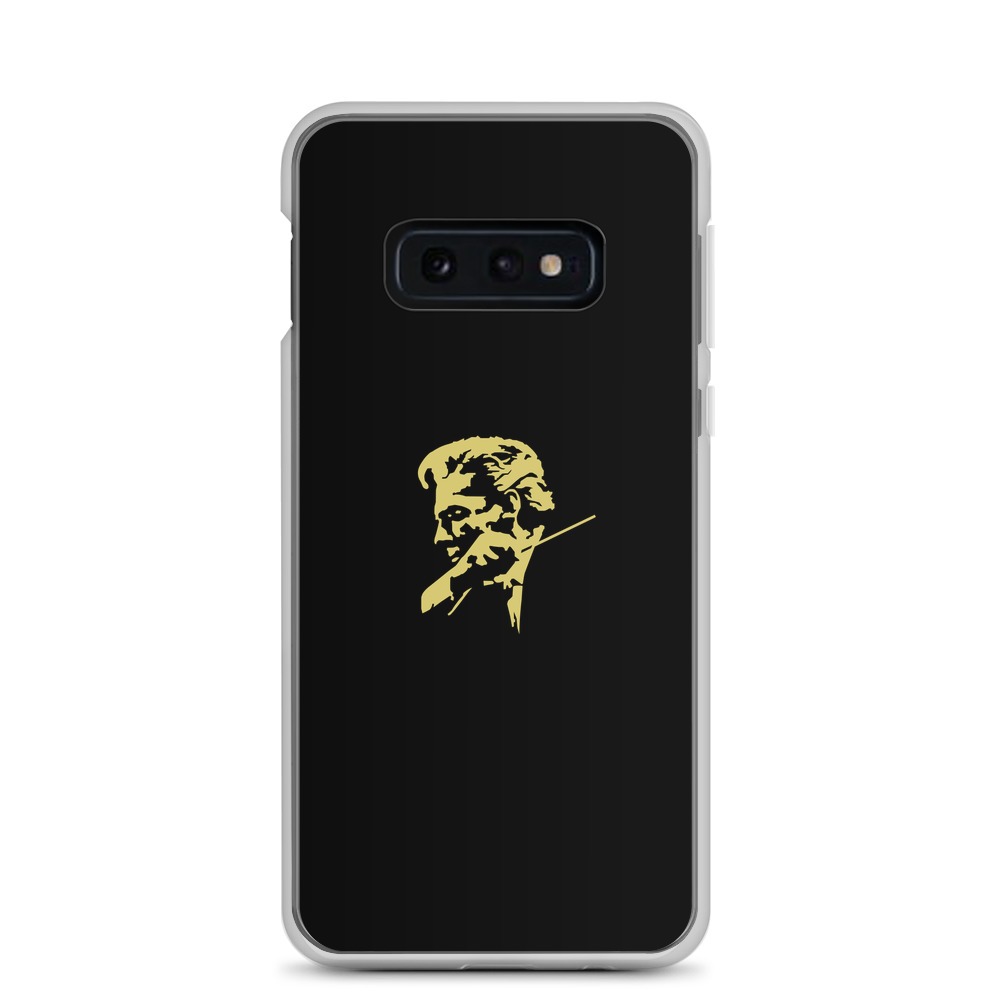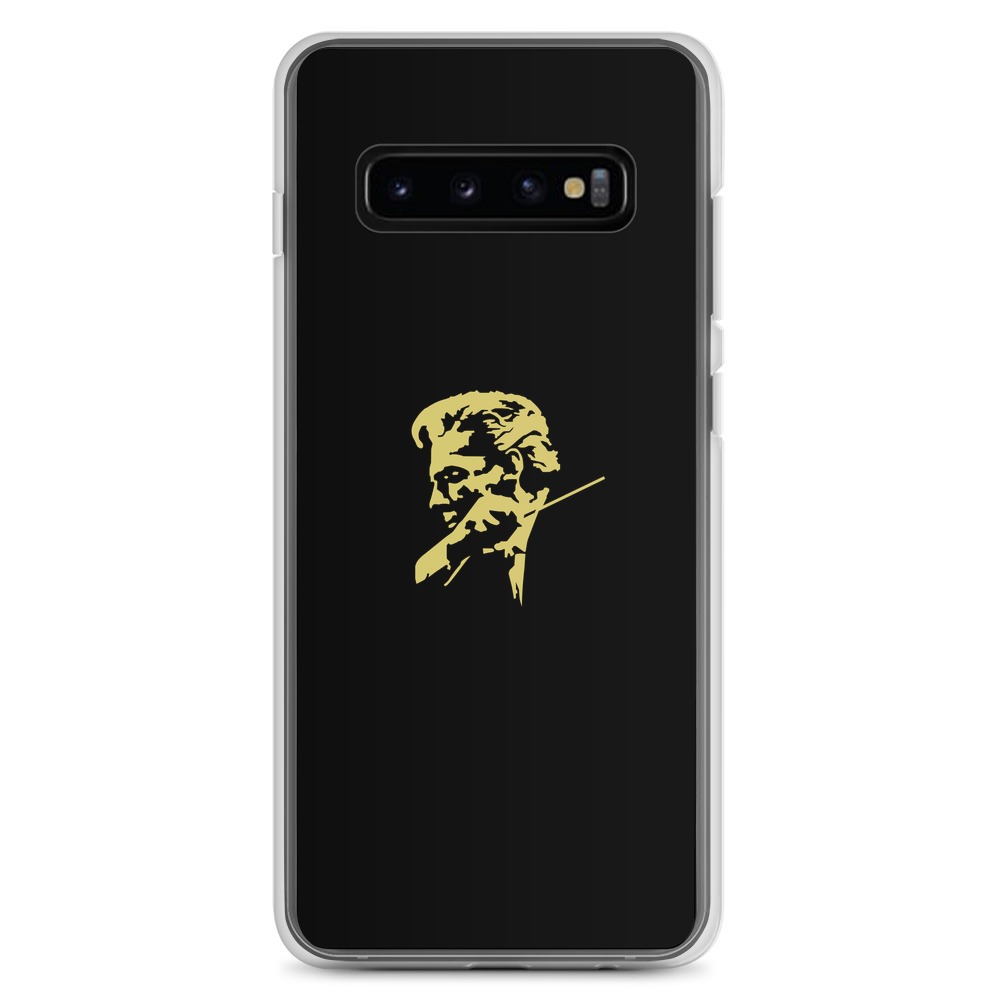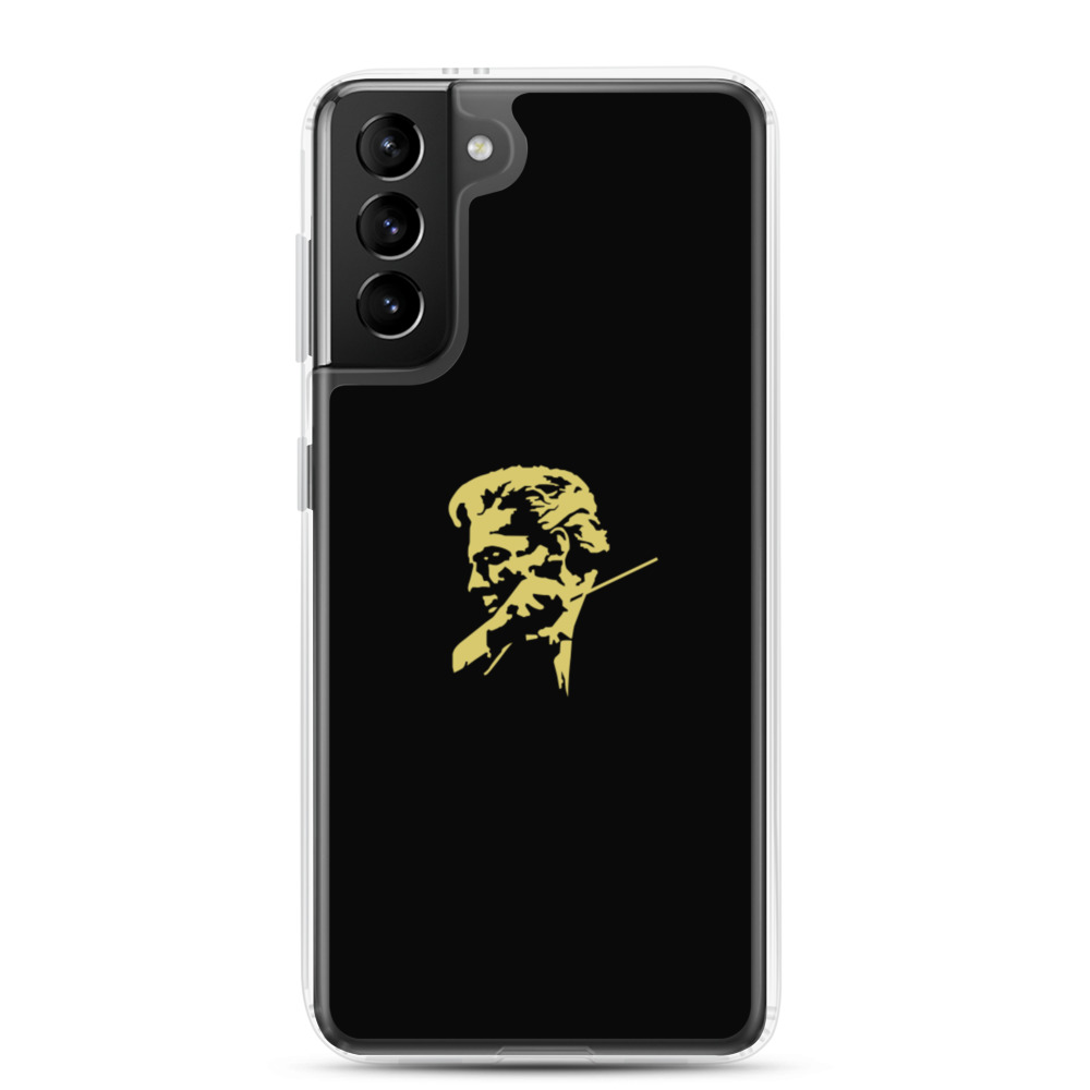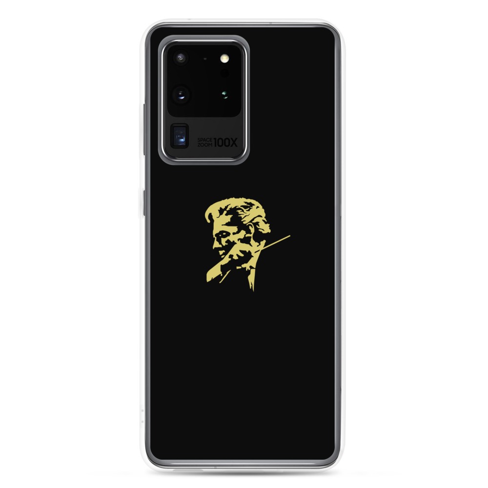 A stylish Samsung phone case with a golden Karajan silhouette.