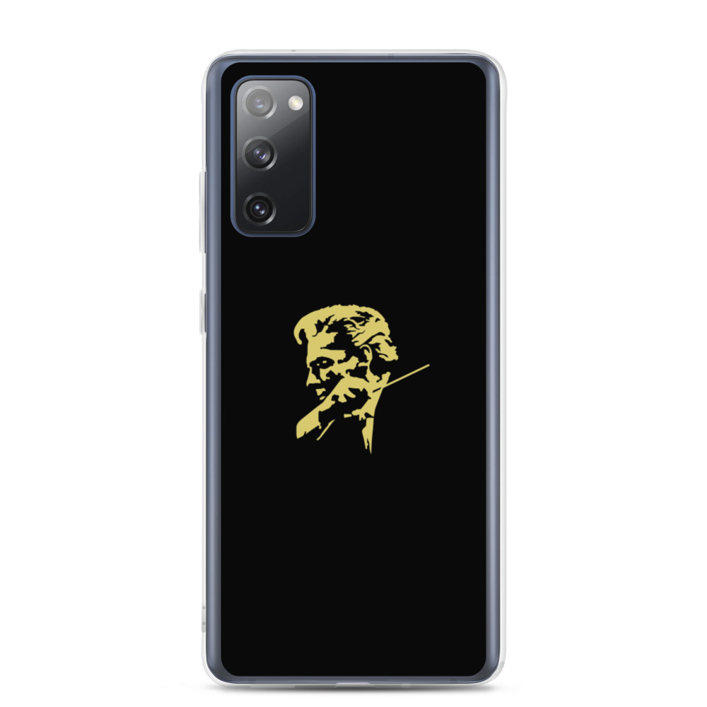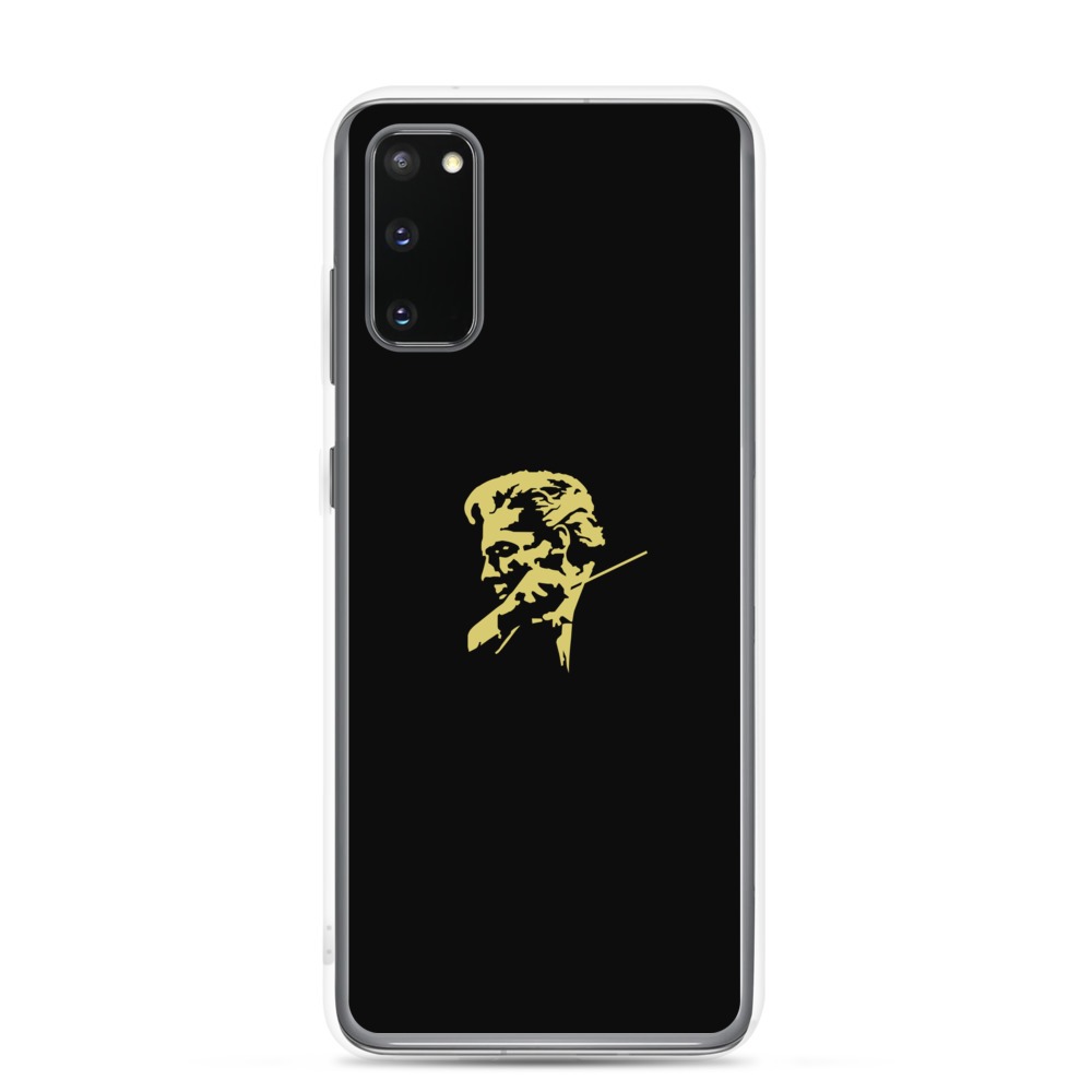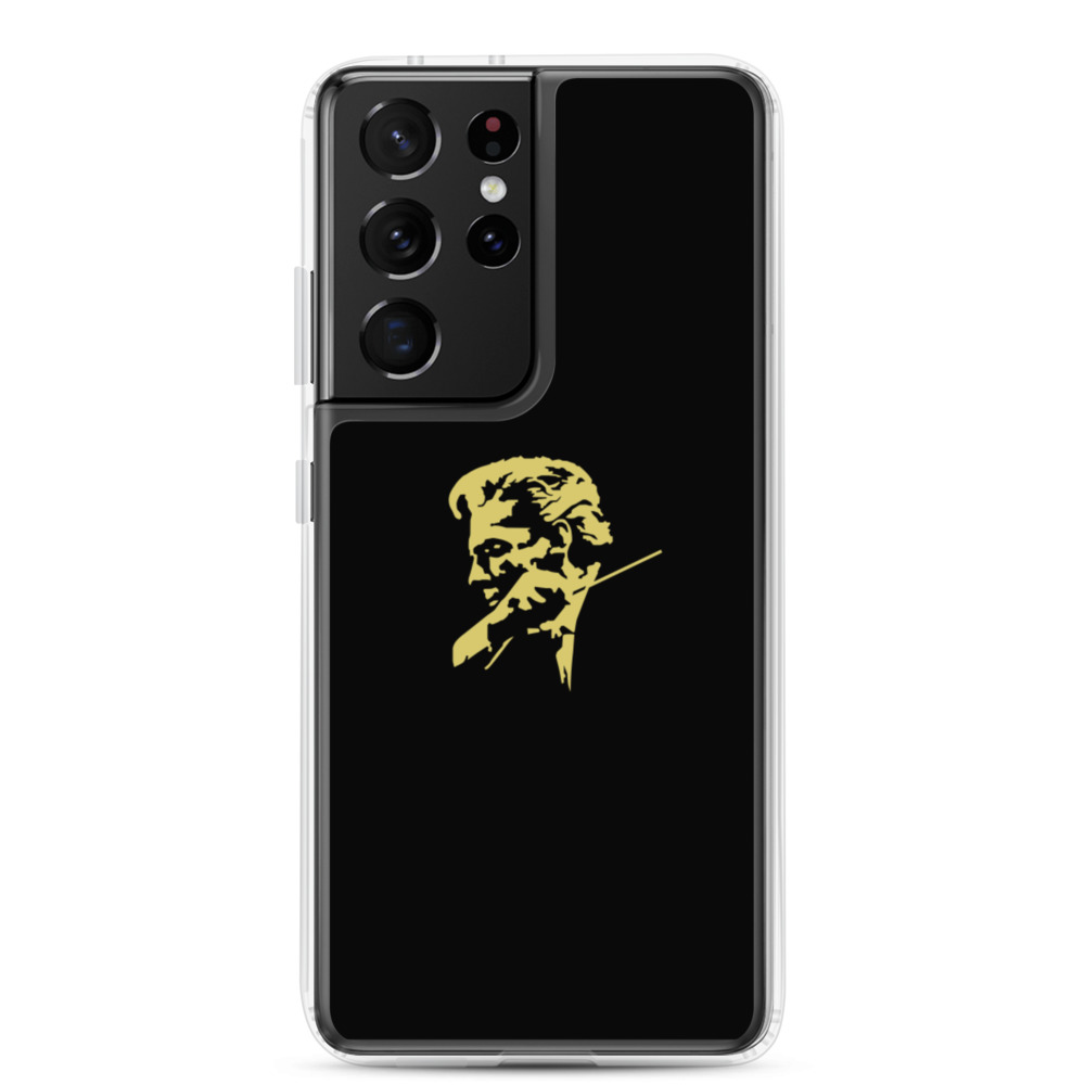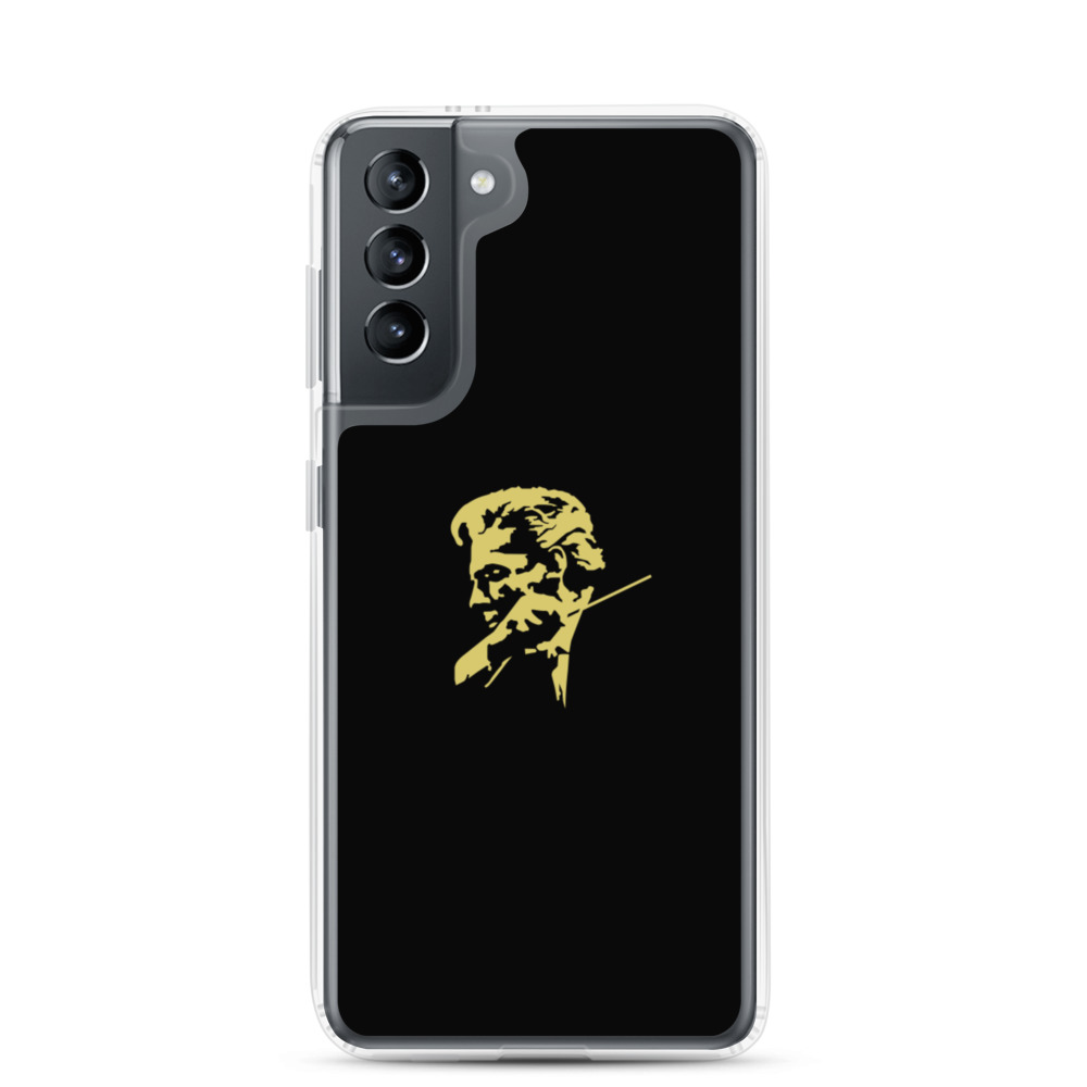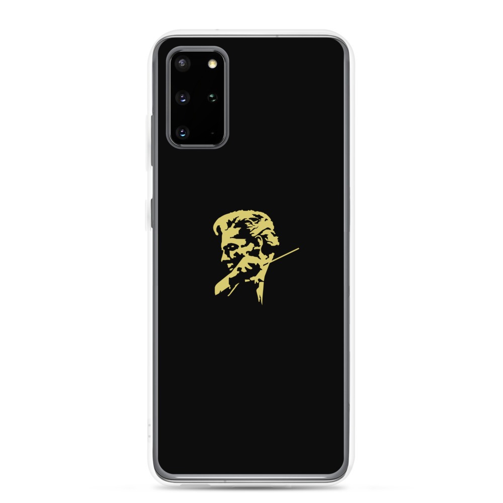 A stylish Samsung phone case with a golden Karajan silhouette.